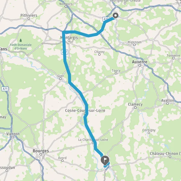 Prendre à droite et rejoindre A19. Continuer sur 35 kilomètres