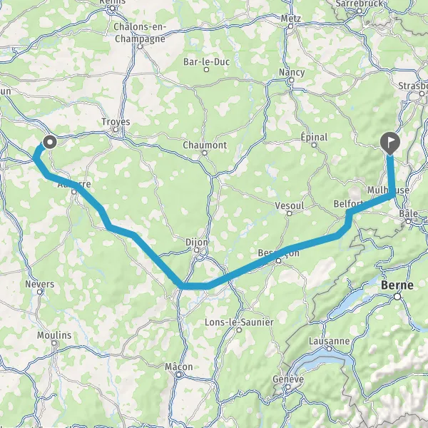 Prendre à droite et rejoindre A36. Continuer sur 225 kilomètres