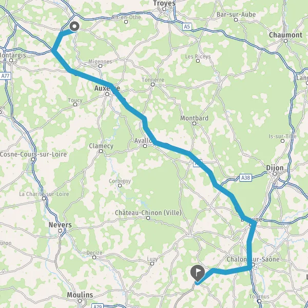 Prendre à droite et rejoindre A6. Continuer sur 190 kilomètres