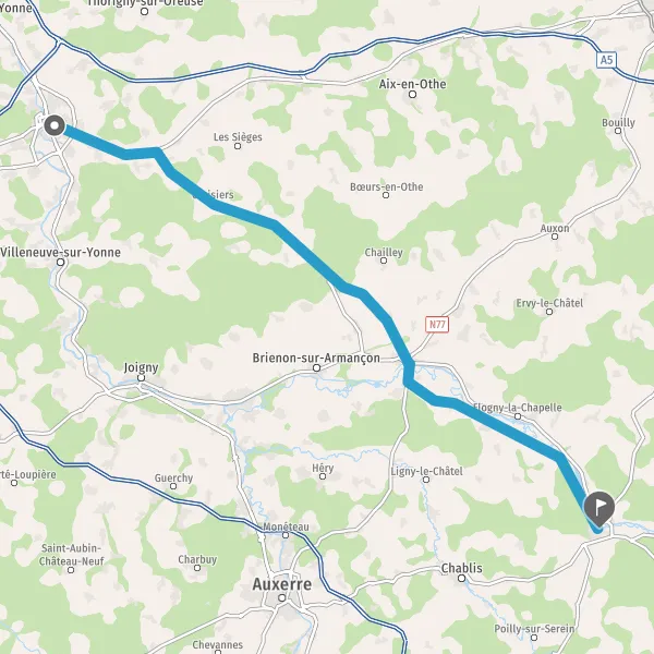 Tourner à droite sur D43 (Route de Tonnerre) et continuer sur 4,5 kilomètres