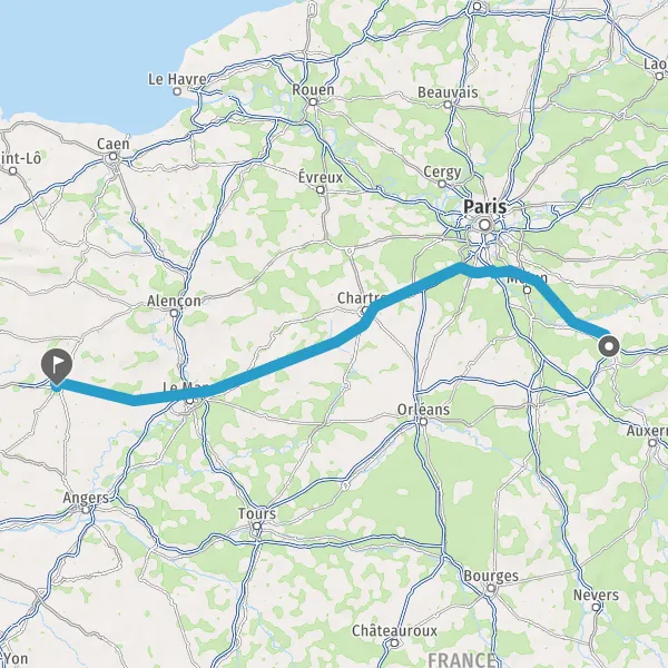 Prendre à droite et rejoindre A11 E50. Continuer sur 147 kilomètres