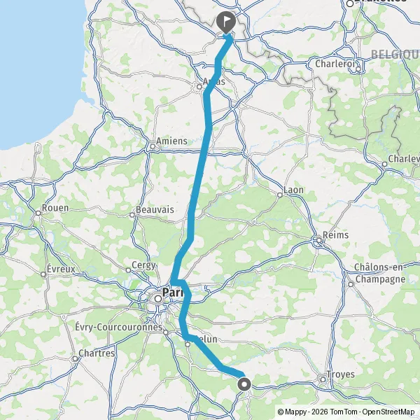 Continuer et rejoindre A1 A1 E15 E19. Continuer sur 121 kilomètres