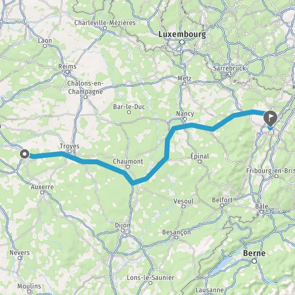 Prendre à droite et rejoindre A5. Continuer sur 138 kilomètres
