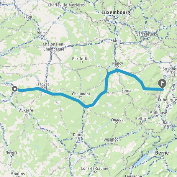 Prendre à droite et rejoindre A5. Continuer sur 138 kilomètres