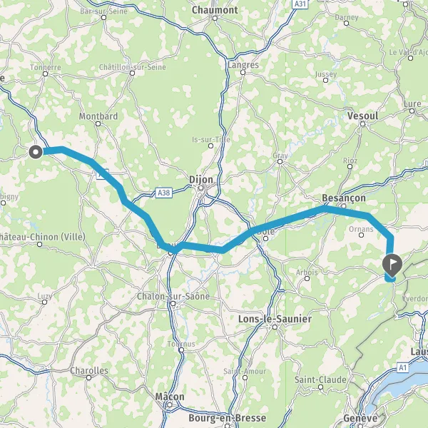 Prendre à droite et rejoindre A36. Continuer sur 82 kilomètres