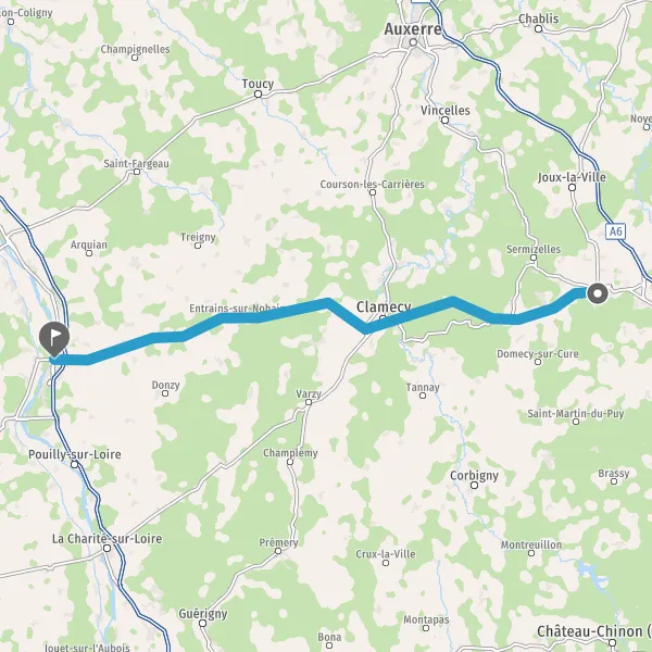 Tourner légèrement à droite sur Route de Clamecy et continuer sur 8 kilomètres