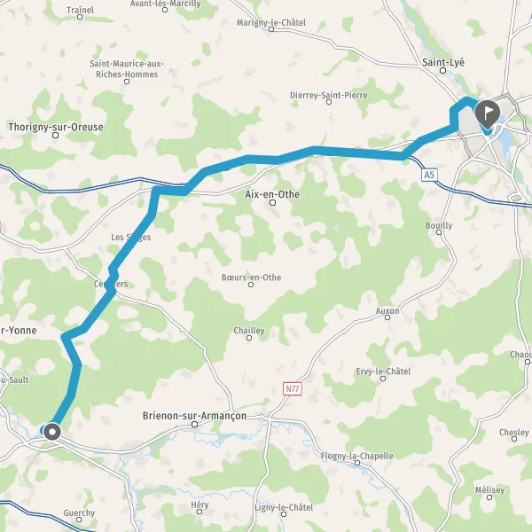 Prendre à droite et rejoindre A5. Continuer sur 27 kilomètres
