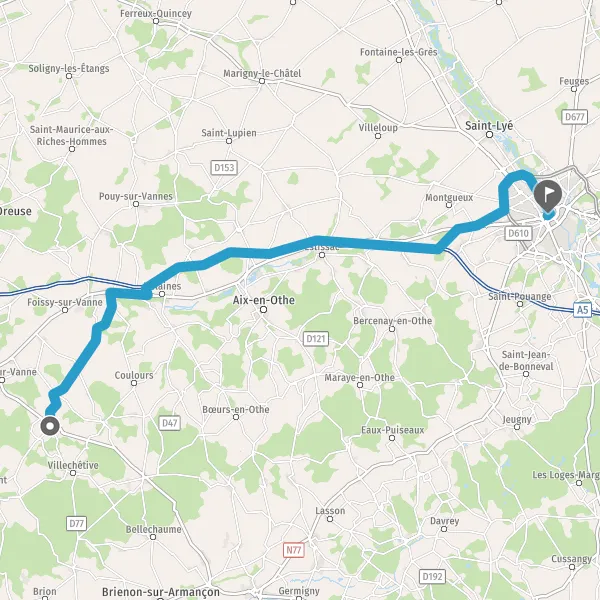 Prendre à droite et rejoindre A5. Continuer sur 27 kilomètres
