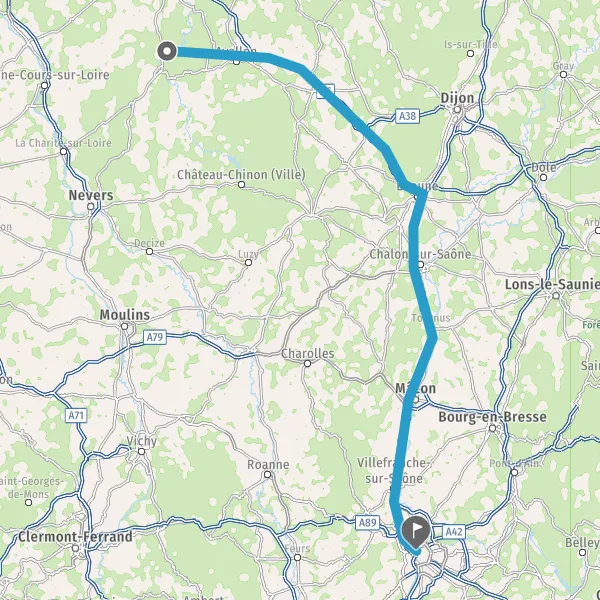 Prendre à gauche et rejoindre A6. Continuer sur 129 kilomètres