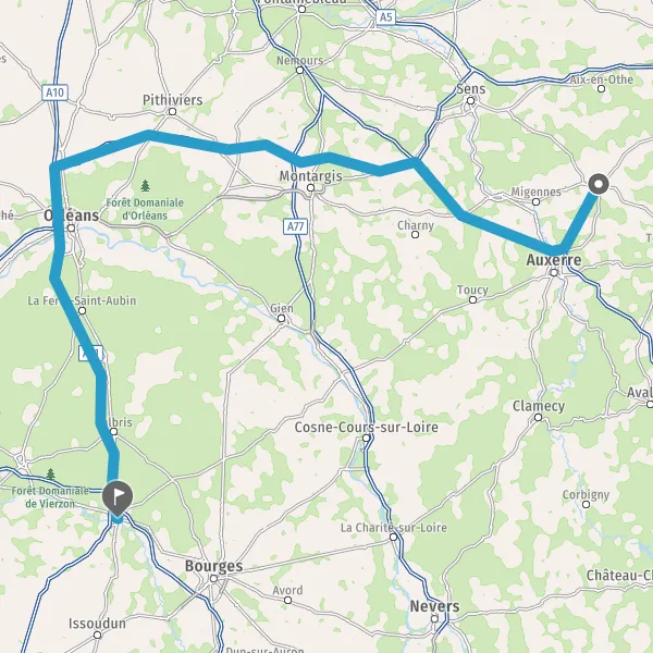 Tourner légèrement à droite sur D965 (Route de Bonny) et continuer sur 15 kilomètres