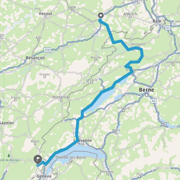 Prendre à droite et rejoindre A36. Continuer sur 5,4 kilomètres