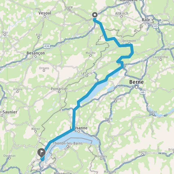 Prendre à droite et rejoindre A36. Continuer sur 5,4 kilomètres