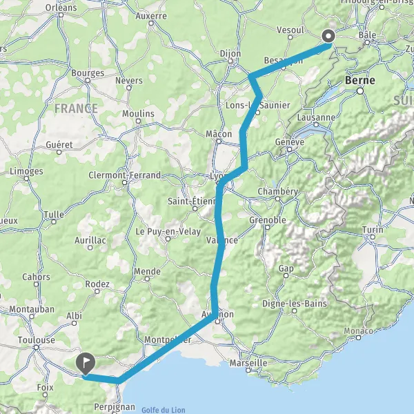 Prendre à droite et rejoindre A36. Continuer sur 141 kilomètres