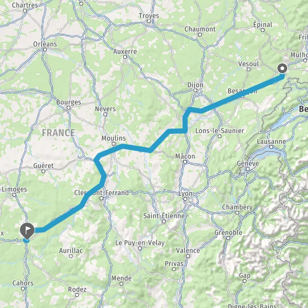 Prendre à droite et rejoindre A36. Continuer sur 183 kilomètres