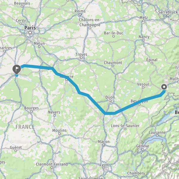 Prendre à droite et rejoindre A36. Continuer sur 183 kilomètres