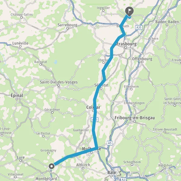 Prendre à droite et rejoindre A36 E54 E60. Continuer sur 43 kilomètres