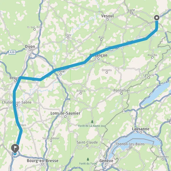 Prendre à droite et rejoindre A36. Continuer sur 183 kilomètres