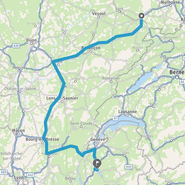 Prendre à droite et rejoindre A36. Continuer sur 141 kilomètres