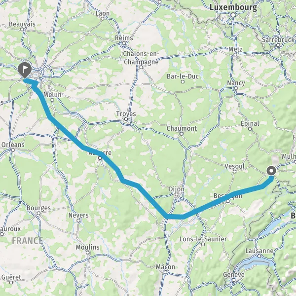 Prendre à droite et rejoindre A36. Continuer sur 183 kilomètres