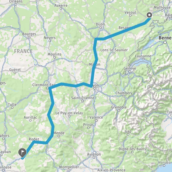 Prendre à droite et rejoindre A36. Continuer sur 183 kilomètres