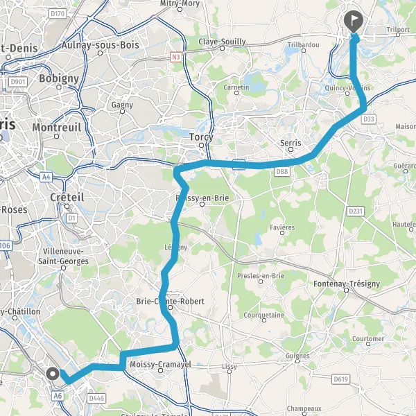 Prendre à droite et rejoindre N104 (La Francilienne). Continuer sur 6,2 kilomètres