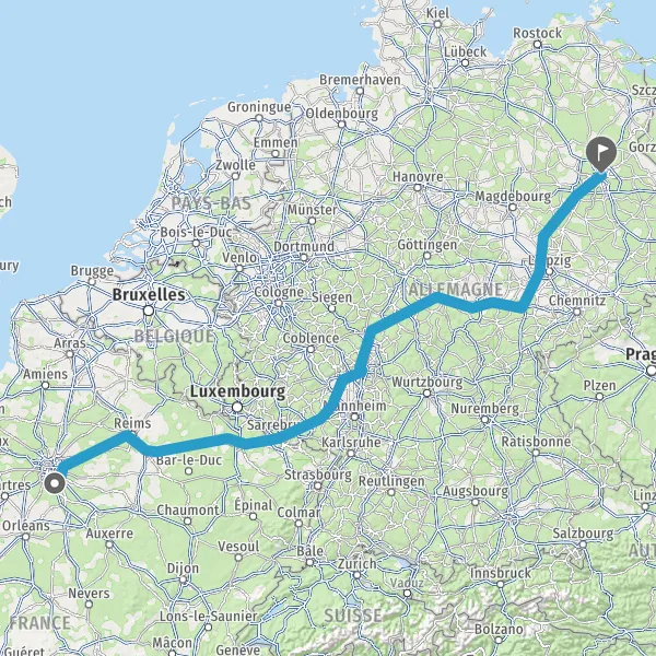 Continuer A2 A2 E30 sur 216 kilomètres