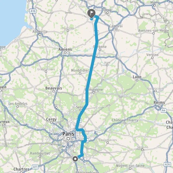 Continuer et rejoindre A1 A1 E15 E19. Continuer sur 121 kilomètres