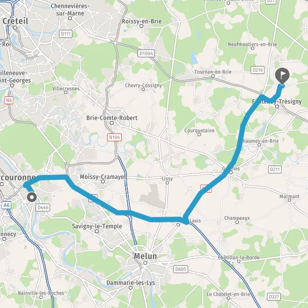 Prendre à droite et rejoindre N104 (La Francilienne). Continuer sur 4,1 kilomètres