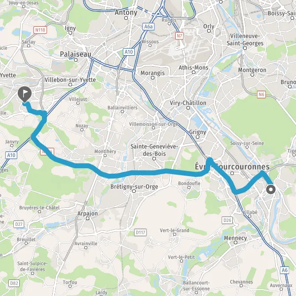 Prendre à gauche et rejoindre N104 (La Francilienne). Continuer sur 19 kilomètres