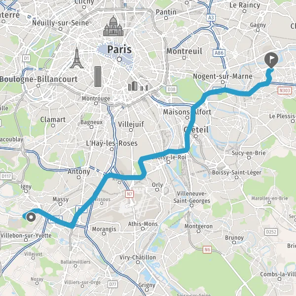 Prendre à gauche et rejoindre N186 (Périphérique de l'Île-de-France). Continuer sur 550 mètres