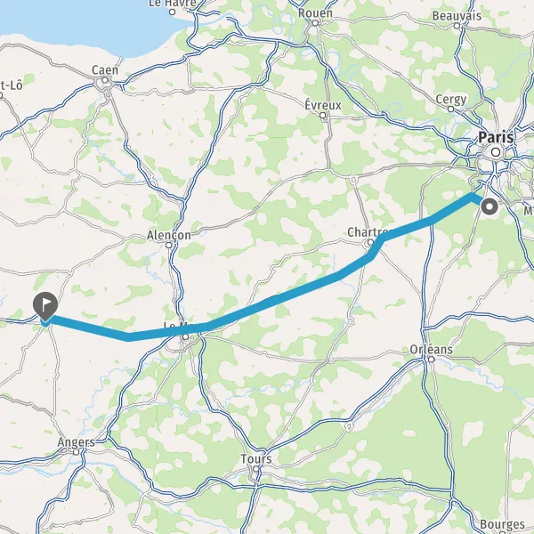 Prendre à droite et rejoindre A11 E50. Continuer sur 147 kilomètres