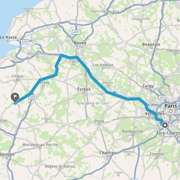 Prendre à droite et rejoindre A28 E402. Continuer sur 53 kilomètres