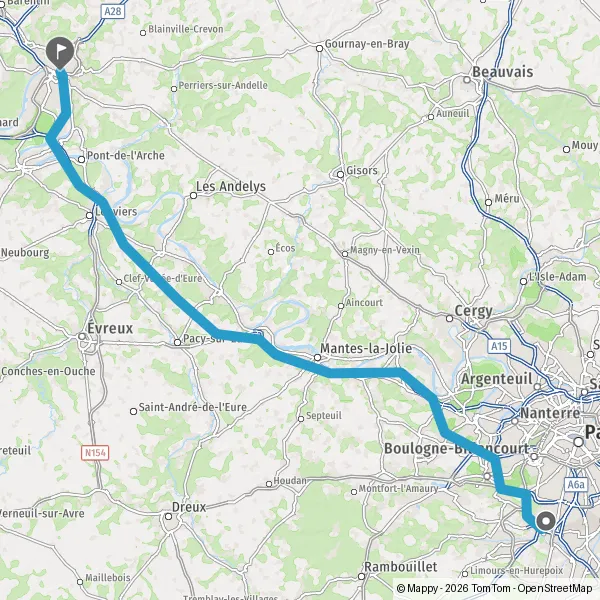 Payer 3,00 € (Péage Buchelay) Payer 4,50 € (Péage Heudebouville Barriere) 59 km