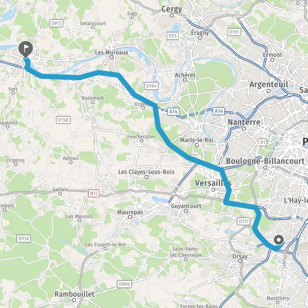 Prendre à droite et rejoindre A86. Continuer sur 6,6 kilomètres