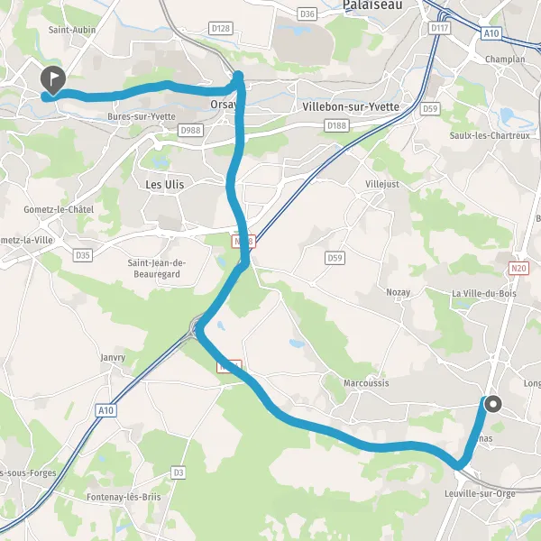 Au rond-point, prendre la 3ème sortie sur D35 (Route de Montlhéry) et continuer sur 1,2 kilomètre
