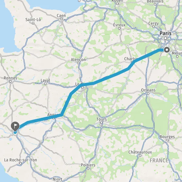 Prendre à droite et rejoindre A11 E50. Continuer sur 147 kilomètres