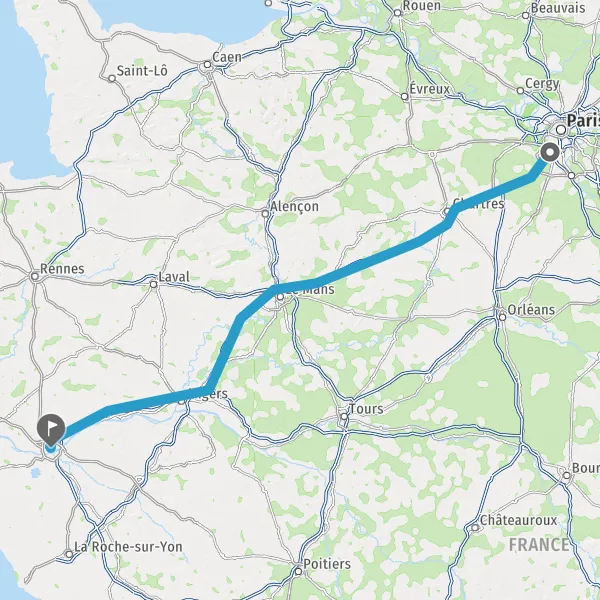Prendre à droite et rejoindre A11 E50. Continuer sur 147 kilomètres