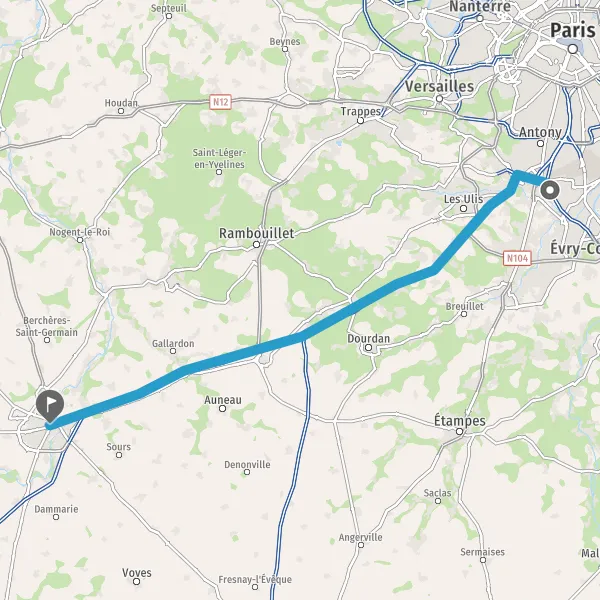 | Distance en voiture | 73 km à 77 km |