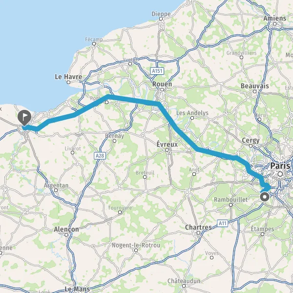 Continuer E46 (L'Autoroute de Normandie) sur 34 kilomètres