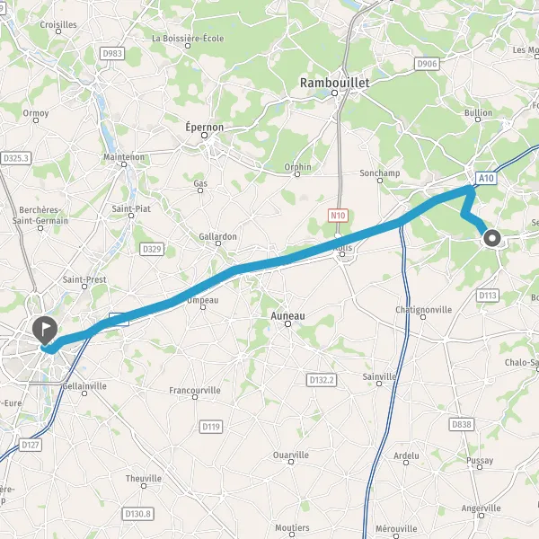 | Distance en voiture | 42,7 km à 47,3 km |