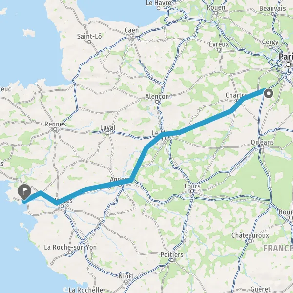Prendre à droite et rejoindre A11 E50. Continuer sur 147 kilomètres