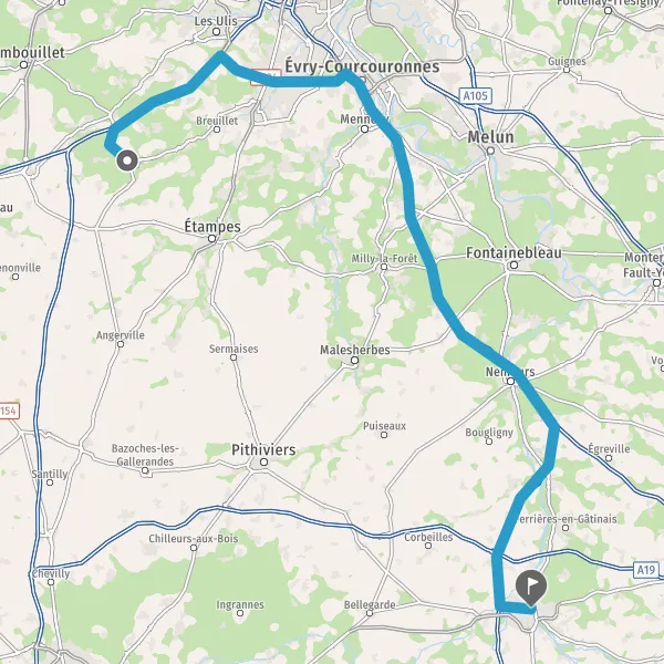 Prendre à droite et rejoindre N104 (La Francilienne). Continuer sur 22 kilomètres