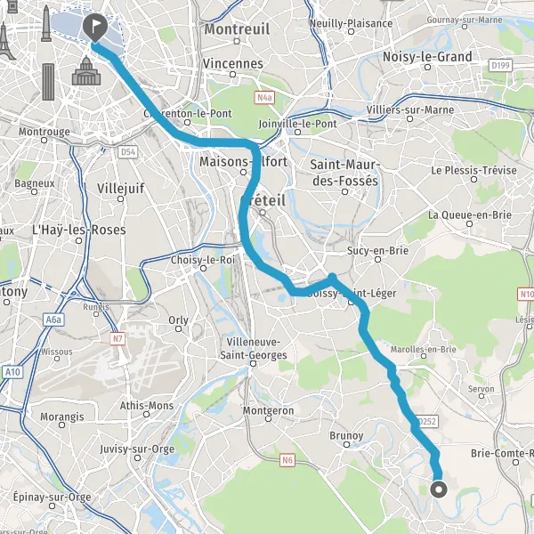 Continuer N19 E54 (Déviation de Boissy-Saint-Léger) sur 3,8 kilomètres