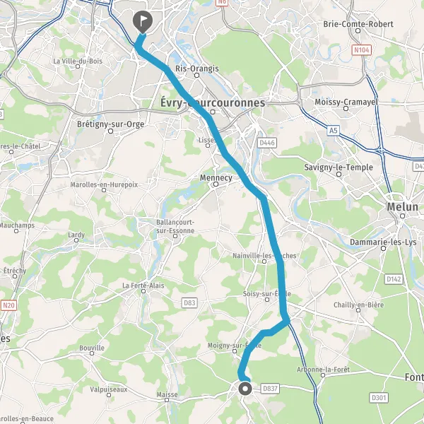 | Distance en voiture | 37,4 km à 39,0 km |