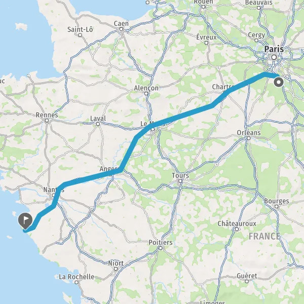 Continuer E501 (L'Océane) sur 165 kilomètres