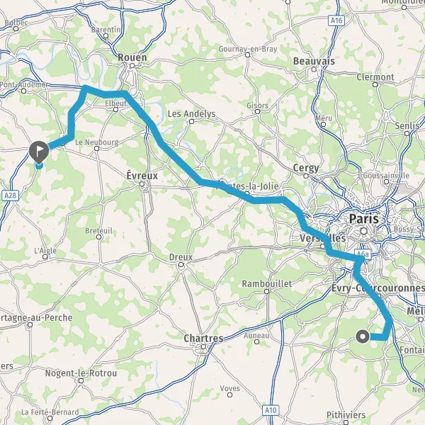 Prendre à droite et rejoindre A28 E402. Continuer sur 37 kilomètres