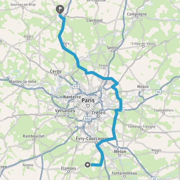 Prendre à droite et rejoindre N104 (La Francilienne). Continuer sur 8,8 kilomètres