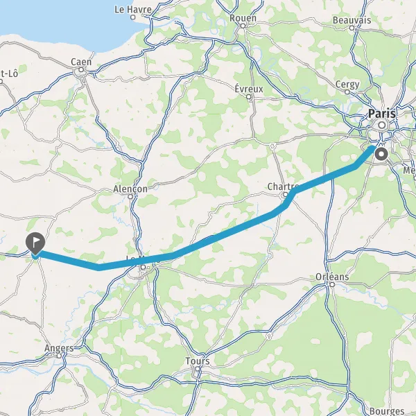 Prendre à droite et rejoindre A11 E50. Continuer sur 147 kilomètres