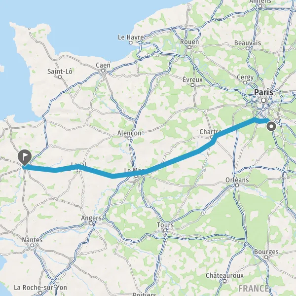 Prendre à droite et rejoindre A11 E50. Continuer sur 147 kilomètres