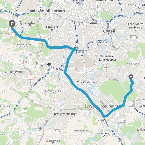 Prendre à droite et rejoindre N104 (La Francilienne). Continuer sur 5,2 kilomètres